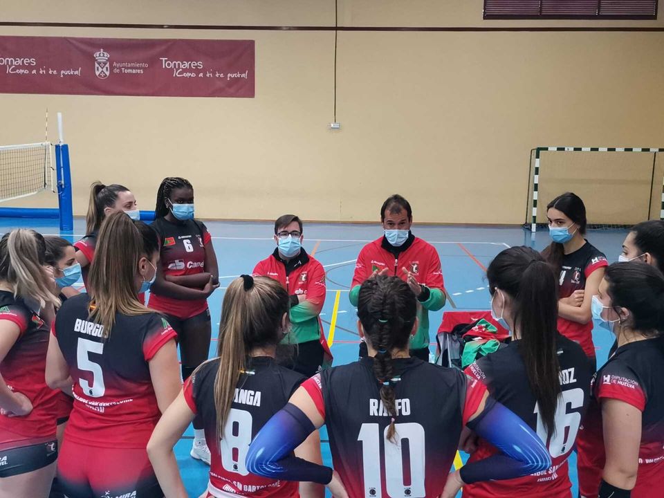 El pasado sábado se disputaba en la localidad sevillana de Tomares, el encuentro correspondiente a la 7ª jornada de liga. Como ya ocurriera en el partido de la semana anterior, las bartolinas, iniciaron el partido con una gran concentración y aunque fueron a remolque durante todo el set, en los puntos finales impusieron su juego ganando en el primer parcial. El segundo set la reacción del equipo local fue contundente marcando distancias para llevarse el set y devolver la igualdad al marcador. En la tercera manga, las fuerzas se nivelaron aunque en los puntos finales, una magnífica estrategia de saque del conjunto local, les daba la victoria en el tercer set. El cuarto set, fue un calco del anterior, pero en los puntos finales, la moneda caía del lado bartolina que conseguía contrarrestar el ataque local con una magnífica serie de bloqueos y defensas de vértigo. Con la moral por las nubes, el equipo de San Bartolomé, iniciaba el 5º set, sin embargo pronto bajarían los pies al suelo ante el gran juego de las sevillanas, que al cambio de campo vencían por 8-4. A las bartolinas no les quedaba otra, que dar todo lo que llevan dentro para forzar con el saque errores en el rival y dejarse la piel en la defensa. Así fue, como punto a punto, fueron recortando ventaja y poniéndose por delante para llevarse el 5º set por 12-15 y sumar así los primeros puntos y la primera victoria de esta apasionante liga de 1ª División Andaluza.